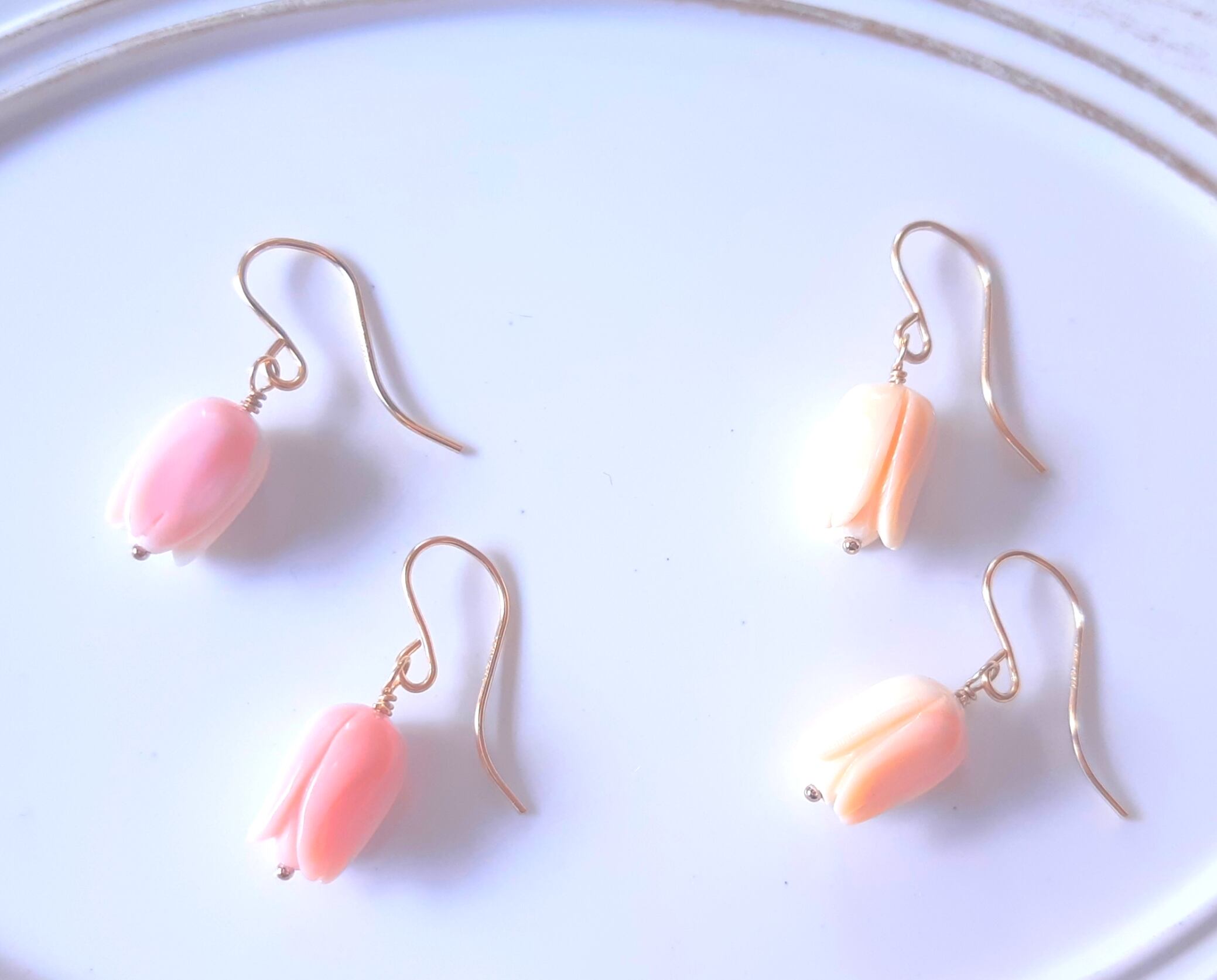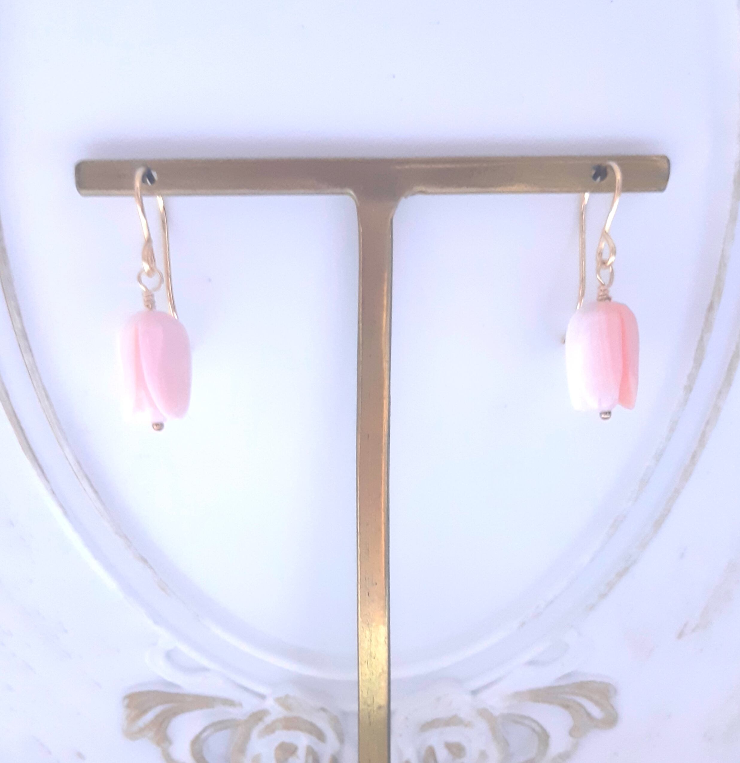 花のつぼみの形をしたピンクのコンクシェルを使用した、可愛らしいデザインになっています♪